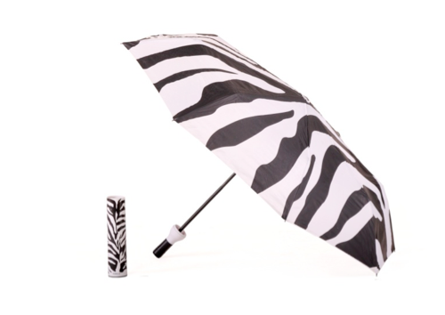 Interior design and fashion often collide—one may be the leader but the other often follows. Animal prints have made a big impact on the runways, and shortly thereafter made their way to our homes in rugs, pillows, bedding and even glassware. Seems like these days ladies just can’t get enough of the cheetah’s, zebras and leopards! This surge in consumers loving these prints was inspiration enough for Vinrella’s Art Director, Nicole Hammonds, to come up with her own rendition of the perfect Zebra print and bottle. Our Zebra umbrella looks great with so many outfits.