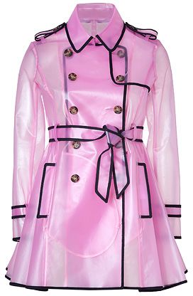 Lately, we’ve seen a few designers tackle this often overlooked piece of clothing. Here, Valentino reinvents the raincoat in a cute, clear trench design.